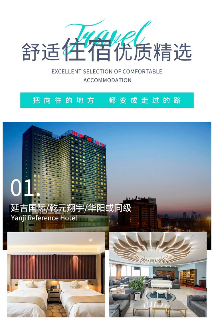 今天是集合日,国内各地的小伙伴来到延边朝鲜族自治州首府——延吉市,一座美丽的边疆小城。也是我国最大的朝鲜族聚集地。素有“足球之乡”、“歌舞之乡”的美誉。特别是延吉美食小吃众多,会让你味蕾大开,大饱口福。延吉朝鲜冷面,柔韧耐嚼的荞麦面,辣中带甜的泡菜,酸甜可口的牛肉汤,让人垂涎欲滴。参鸽汤,酥烂的鸡肉、精华的糯米、鲜香的鸡汤,营养丰富,大补之首。还有充满朝鲜族风味的米肠、石锅饭、狗肉汤、肥肠锅等各种美食,让你沉醉在美景、美食之中,流连忘返。大家晚上可以自由寻觅美食~明天我们就要开启旅程啦~