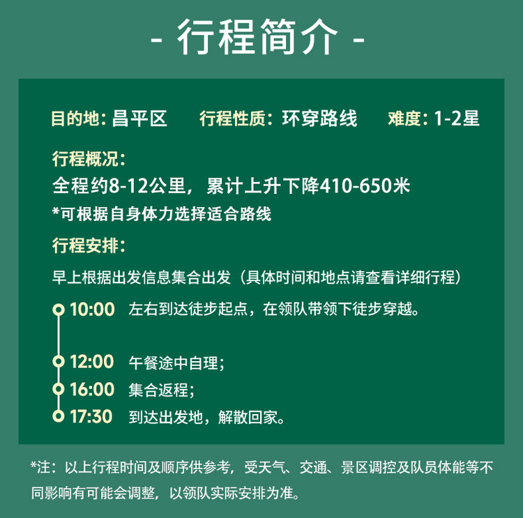 *以上行程时间及顺序供参考,受天气、交通、景区调控及队员体能等不同影响有可能会调整,以领队实际安排为准。