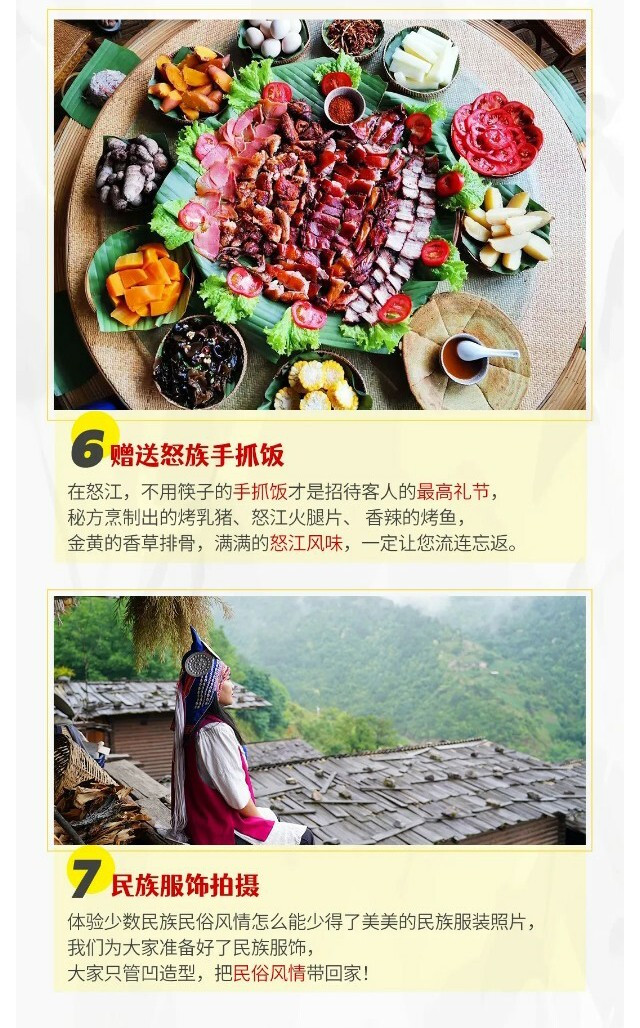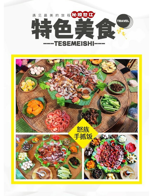 晚餐特别赠送大家特色美食—【怒族手抓饭】(10人及以下赠送怒族特色餐),大家可以围坐火塘边,喝茶聊天,或者载歌载舞,感受怒族风情。