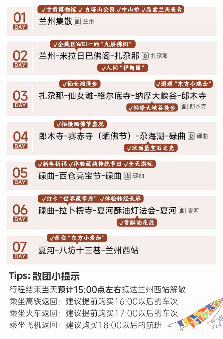 游玩结束后前往【兰州西站】(行程约:135KM,车程约2小时)。,本次行程便告一段落,可根据后续安排换乘交通。若有返程或接续行程的需求,也可提前告知,方便做好衔接准备。