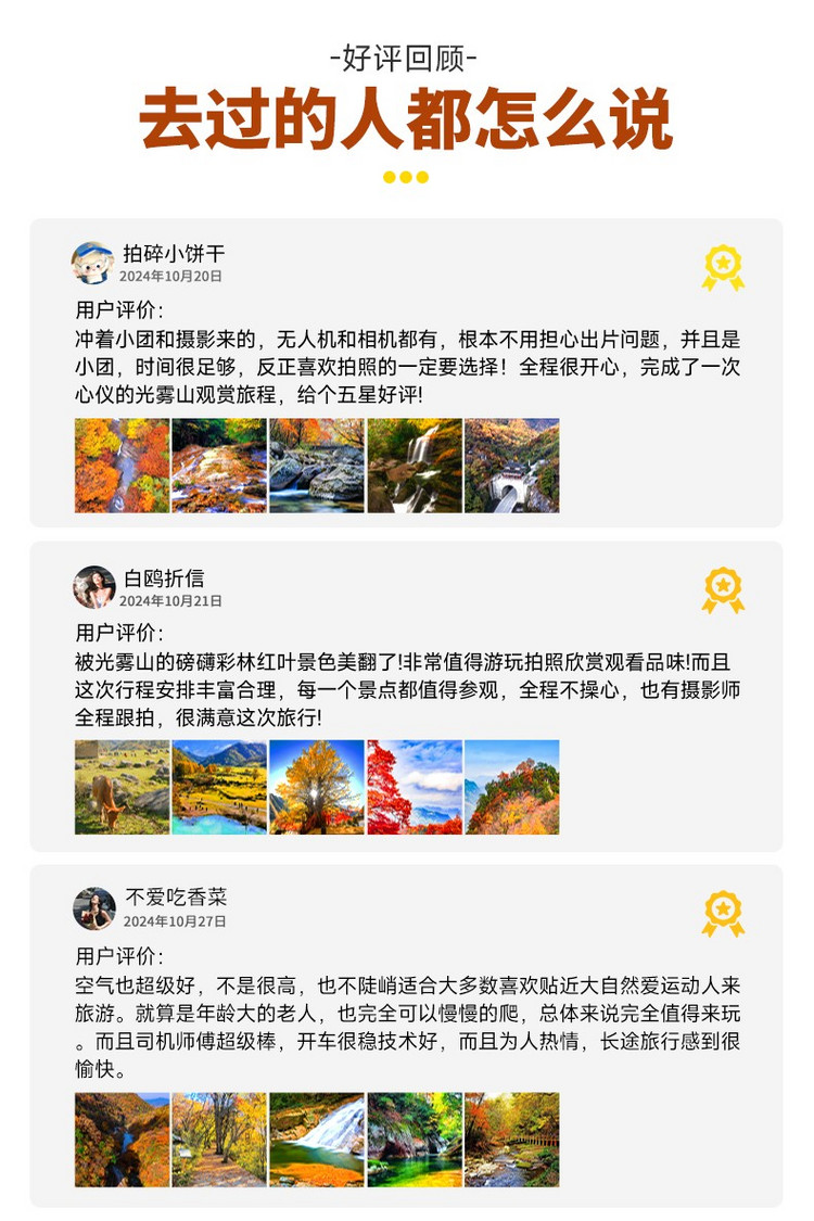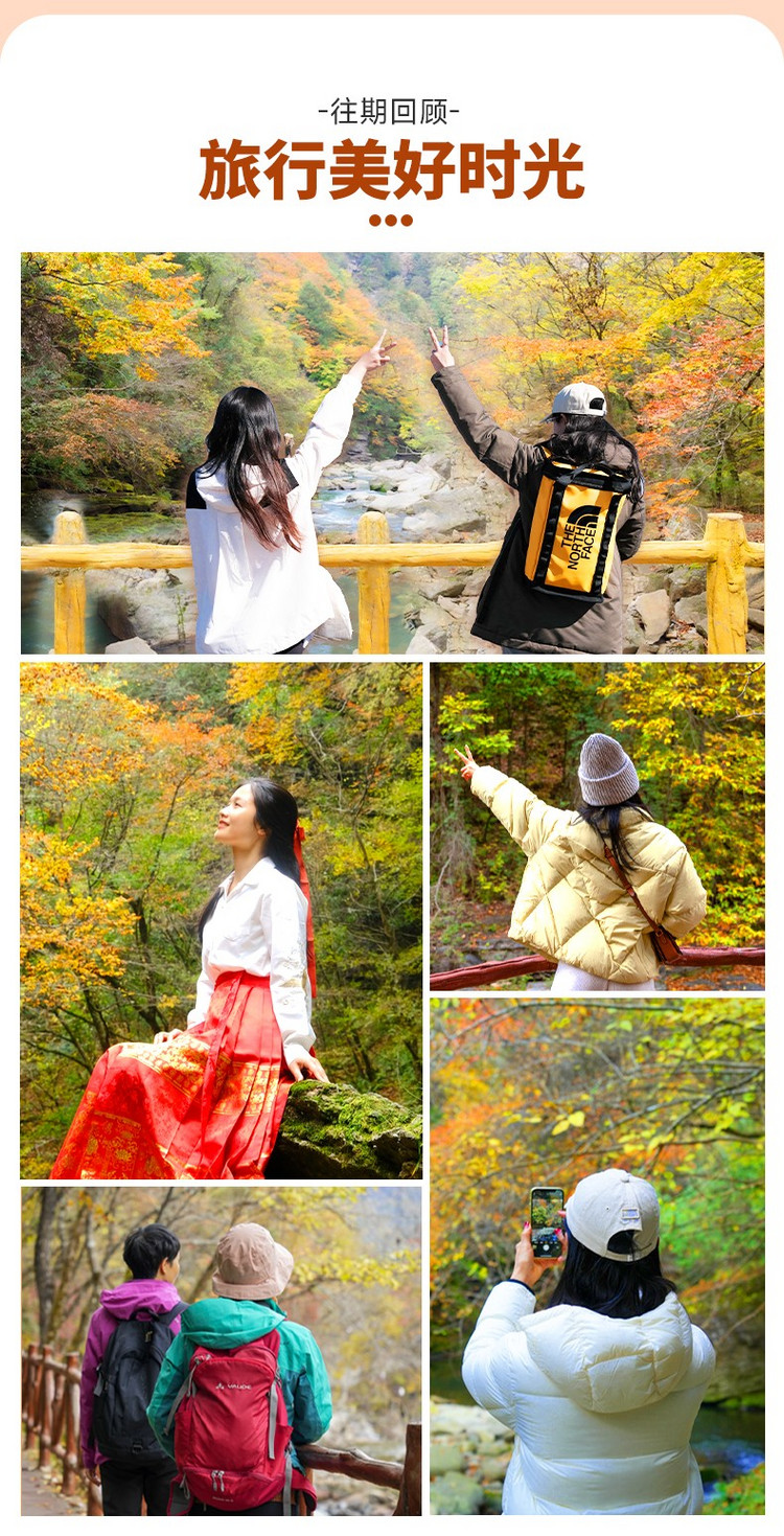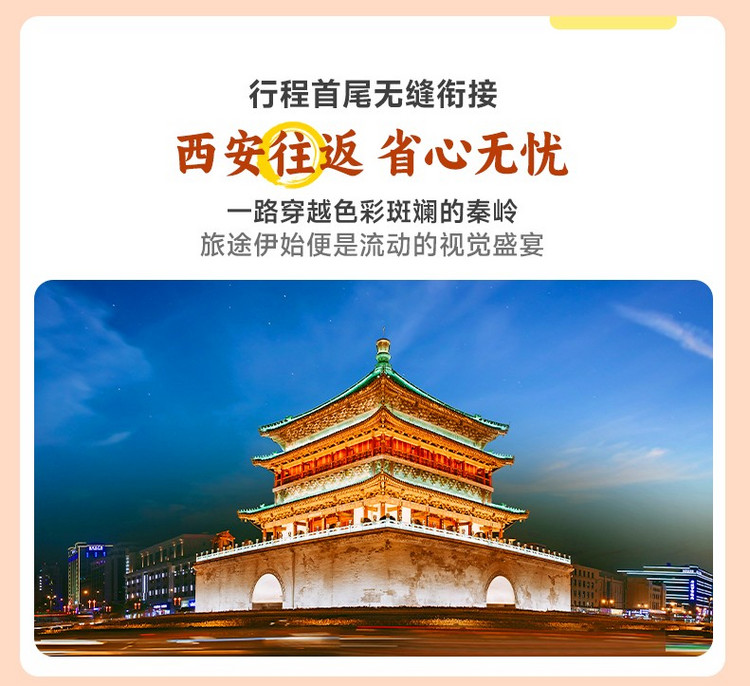 游玩结束后,中午便启程穿越秦岭返回【西安】,车窗外的山峦从斑斓秋色渐变为关中平原的辽阔景象。约18:00抵达西安指定解散点(高铁站),结束这场贯穿秦巴秘境的六日秋色盛宴。散团后大家可以自由活动。欢乐的时光总是短暂的,也期待我们下一次的相遇。