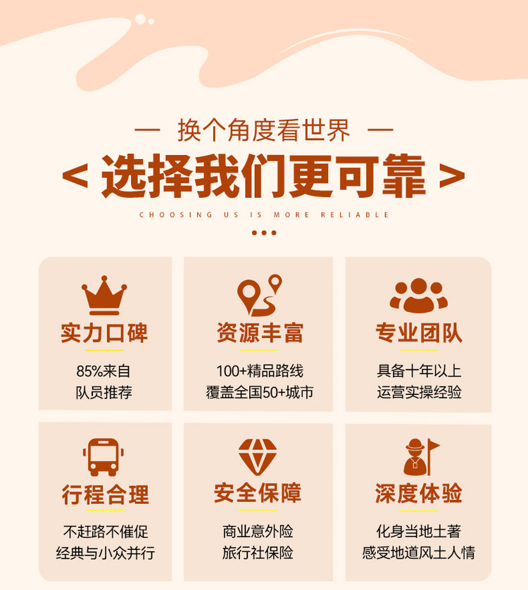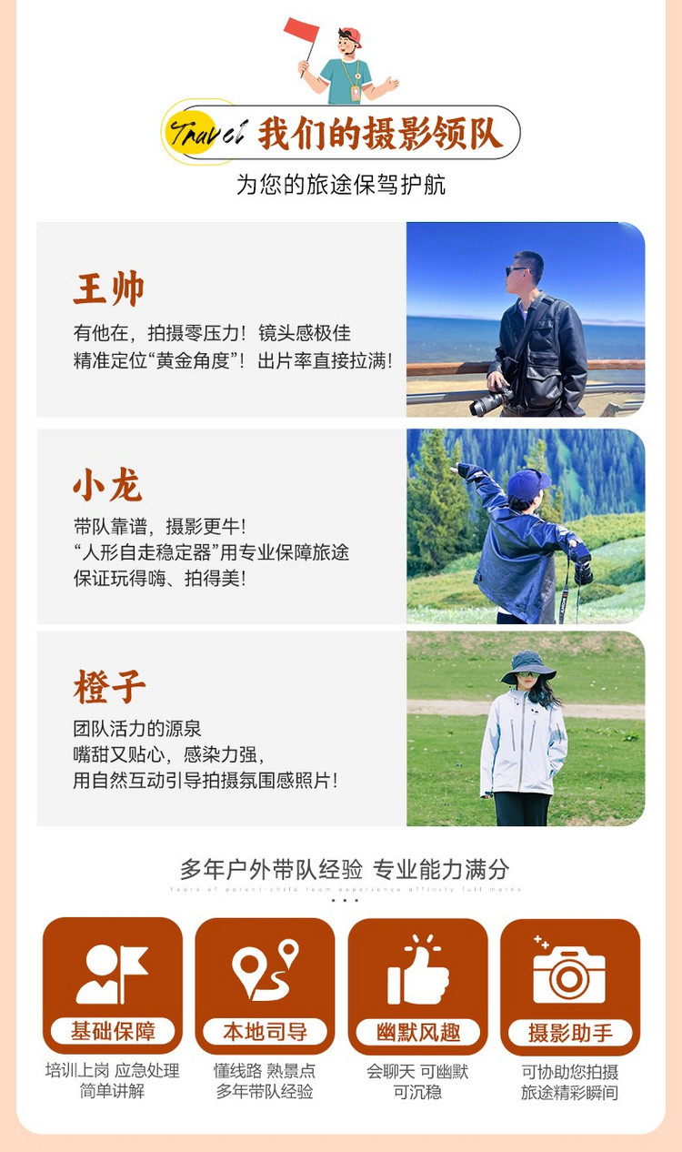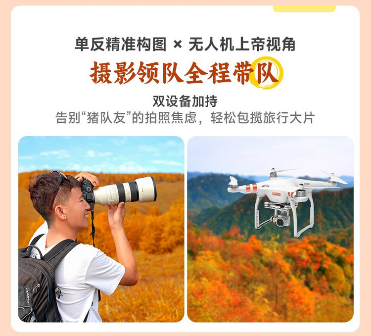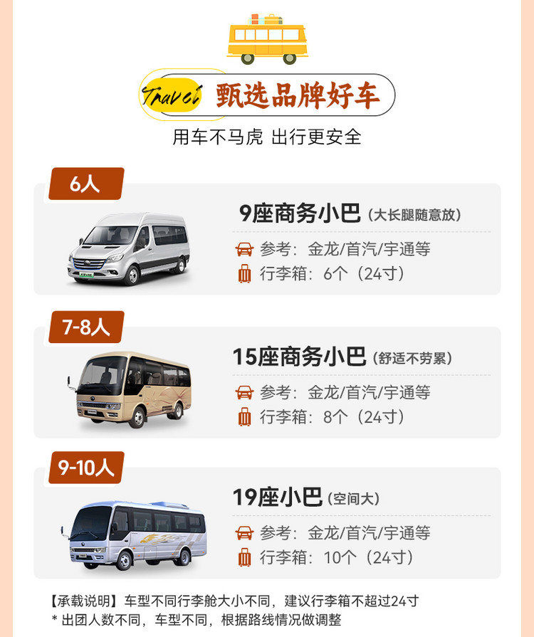 6人成团,10人满团,摄影领队跟拍,安排19座商务车