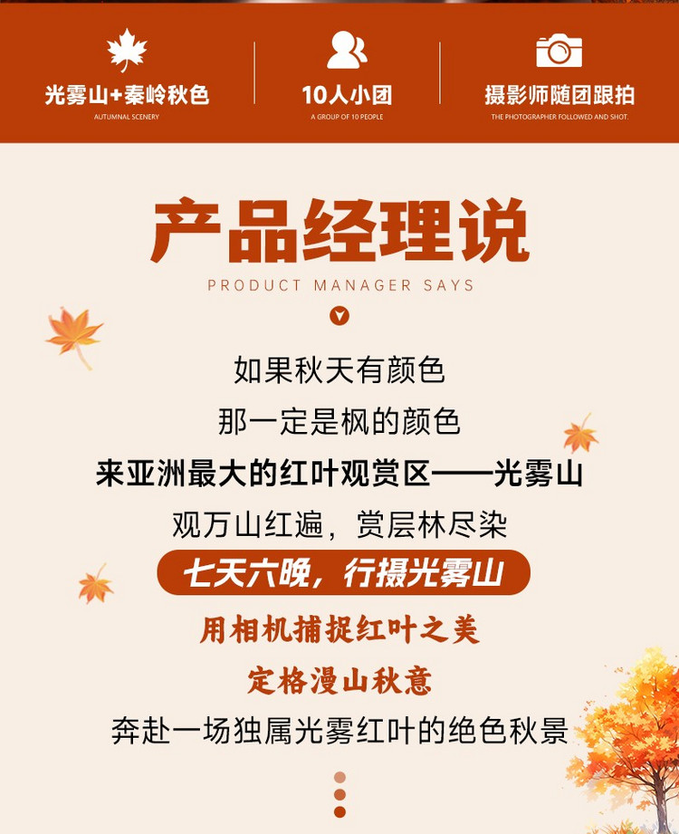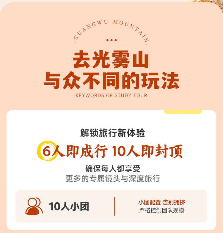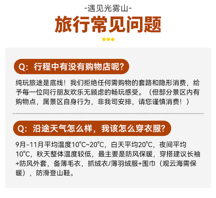 出发前三天短信通知集合酒店。领队会在出发前一天下午18:00前联系您。到达酒店报【光雾山旅拍+姓名】入住酒店。