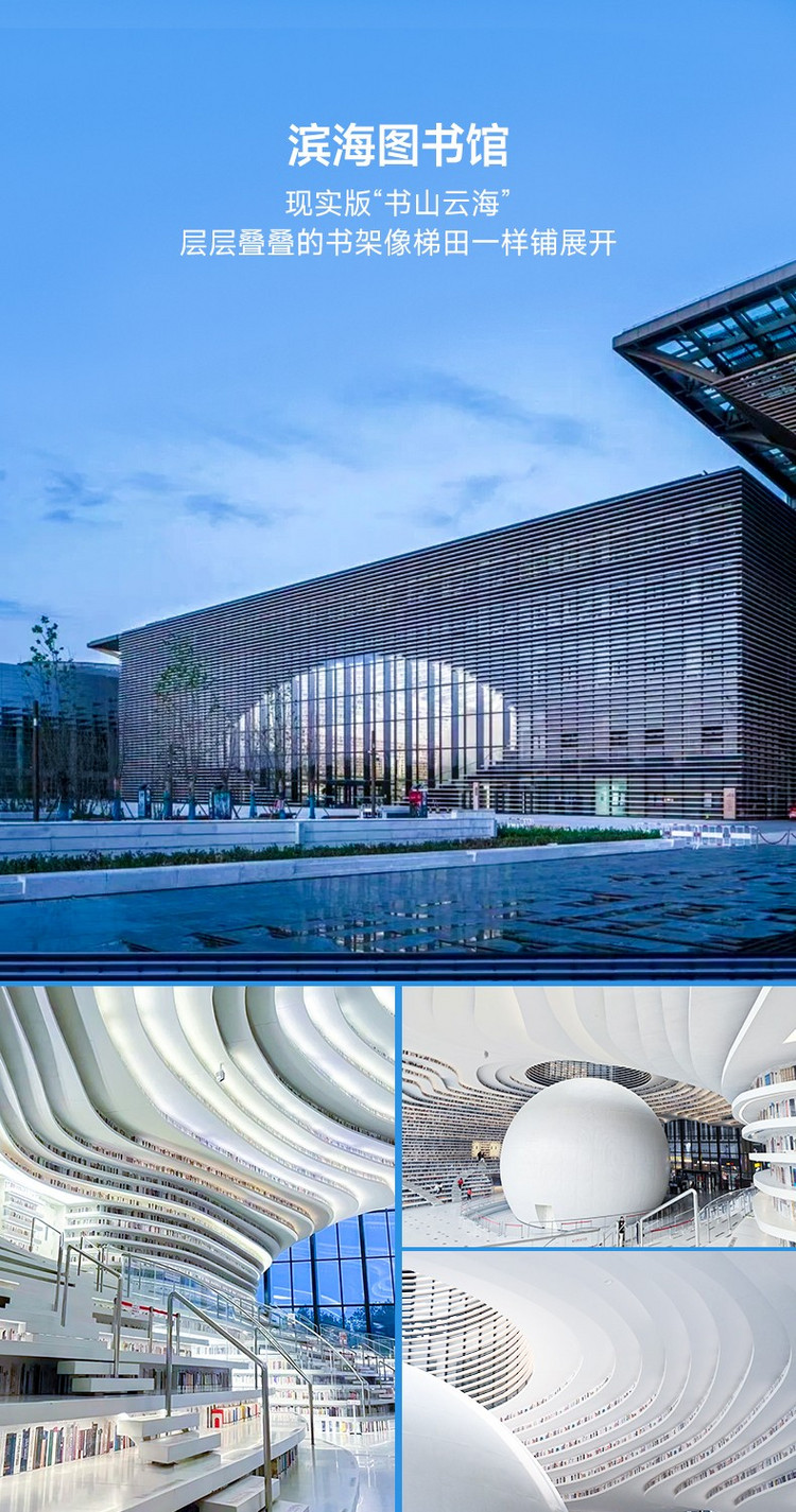 11:00 左右抵达天津滨海图书馆,自由参观、周边享用午餐。
