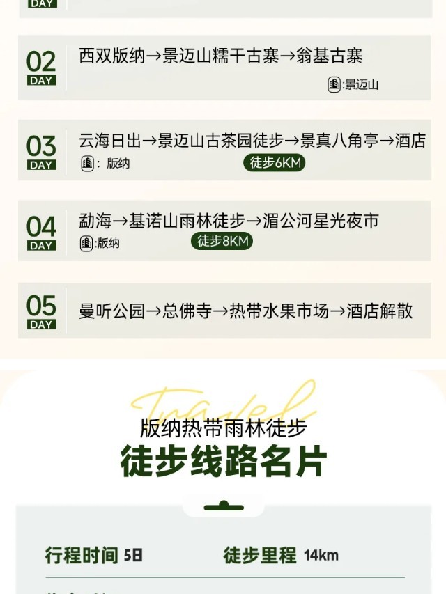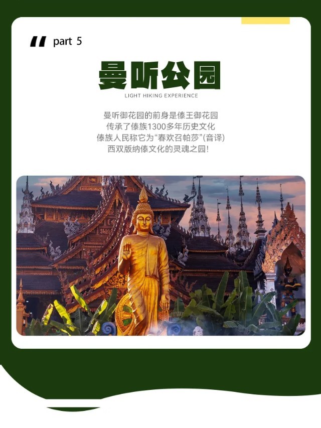 随着夕阳西下,旅程的终点又回到了那片热情洋溢的乐土——西双版纳。从云海仙境到古老茶山,从神圣亭阁到繁华傣乡,这一日的穿越,饱览了天地的造化、人文的传承与生命的繁茂,为身心画下了一个圆满而丰盈的环线。