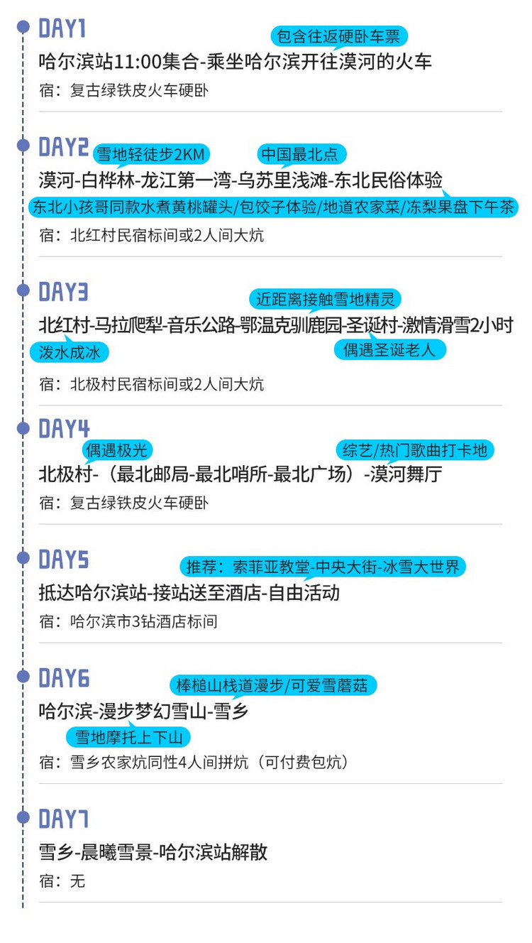 11:00到达哈尔滨火车站集合,随后自行取票乘车(准确集合时间和集合火车站及车次以当天通知为准,会有工作人员提前联系)。