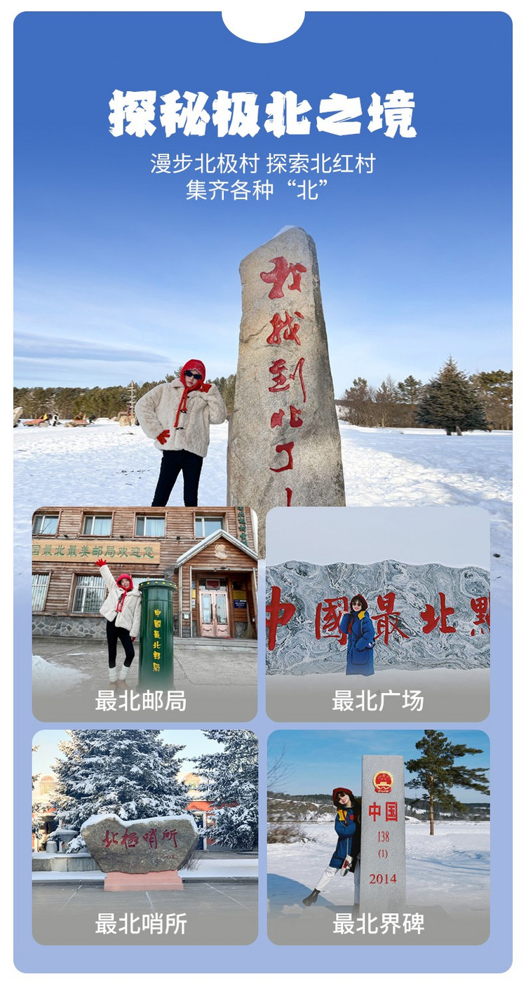 16:30抵达中国最北的原始村庄-【北红村】,这里开发相对没有那么成熟,因此保留了一些原始淳朴的东北边境村庄该有的样子;北红村坐落于中国的最北端,位于中俄交界,大家可以在这里体验一下泼水成冰的感觉哦~还可以穿上乡村特色的花棉袄COSPLAY。