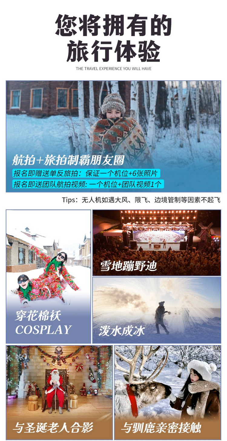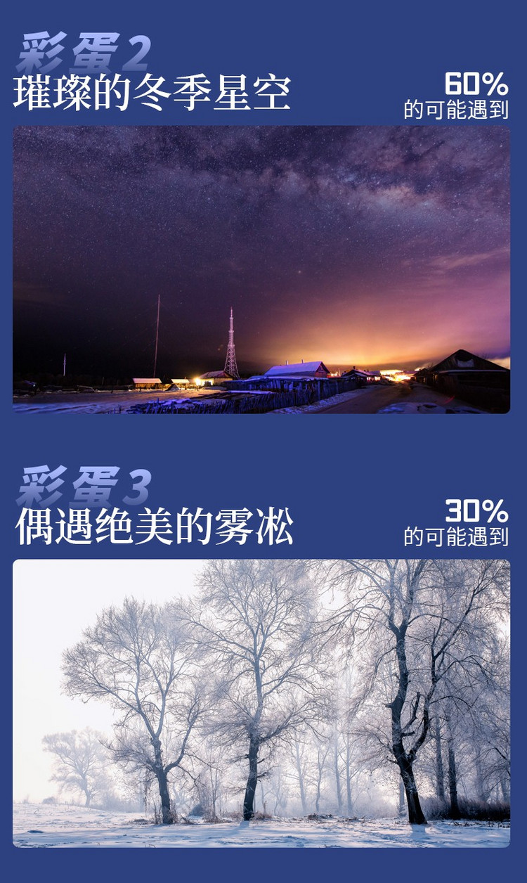 2、雪乡因条件有限不提供一次性洗漱用品和吹风机,请提前自备。