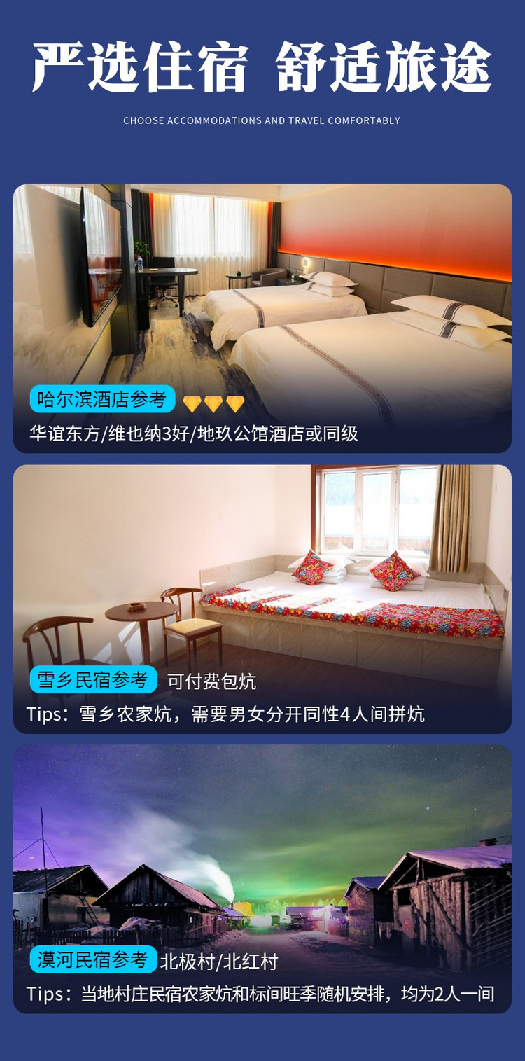 3、北极村住宿条件有限,请自备洗漱用品和吹风机。