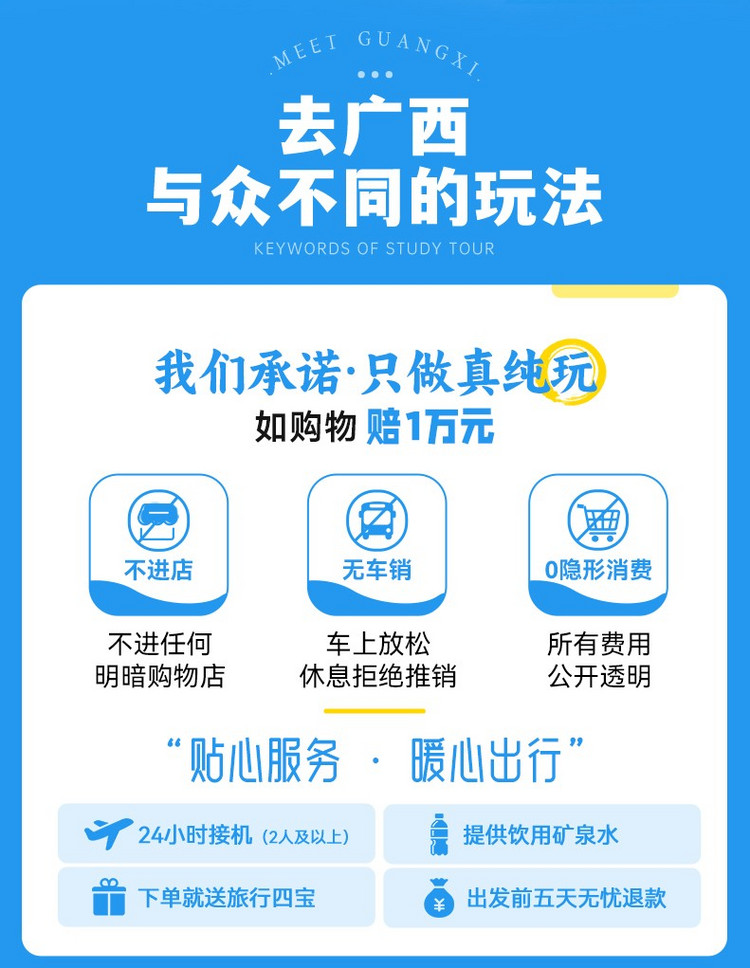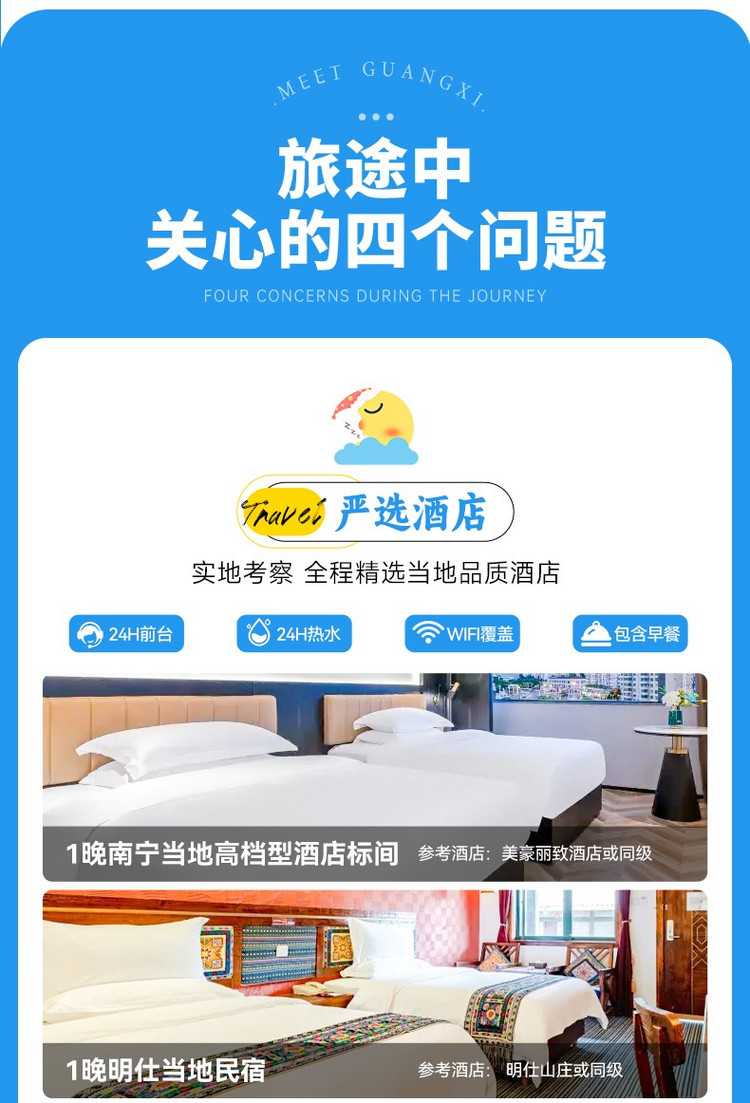 ★温馨提示:南宁公共交通十分方便,多数目的地均可乘坐地铁到达,您也可以扫一辆共享电车,骑着电驴走街串巷,旅行途中无司导跟随,请您自由活动时注意安全,保管好随身物品哦。