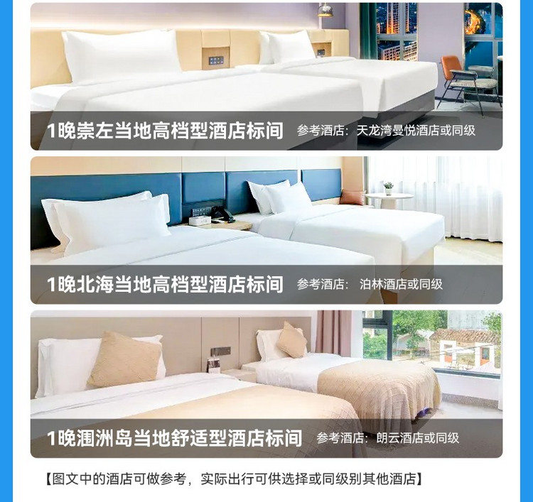 尽兴之后,返回【北海市区】的四钻酒店入住,在海风微拂的宁静中结束这从山林精灵到海滨浪漫、从自然生态到舌尖盛宴的丰富多彩的一天。