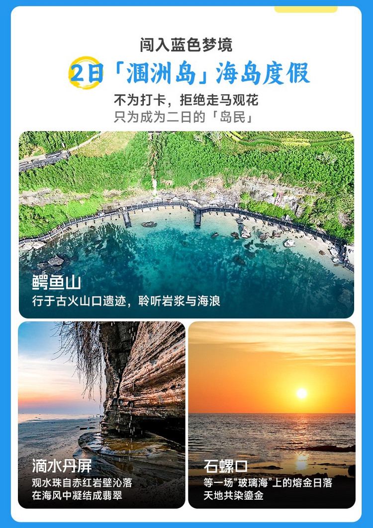 今天是海岛旅程的最后一天,我们将以轻松悠闲的方式,深度感受涠洲岛的浪漫与宁静。