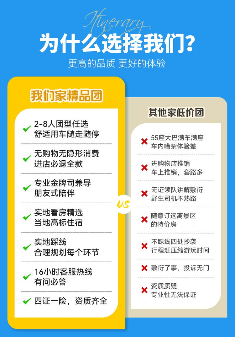 以上行程仅供参考,大家根据自己的航班车次选择返程票。由于旅途中不确定因素较多,领队有权根据实际情况,在不减少浏览景点的情况下对行程进行调整,敬请以出团通知和最终安排为准。