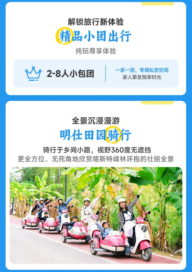 随后前往【明仕田园】喀斯特的奇峰秀水与田间的生活气息自然地融为一体。您可以选择: