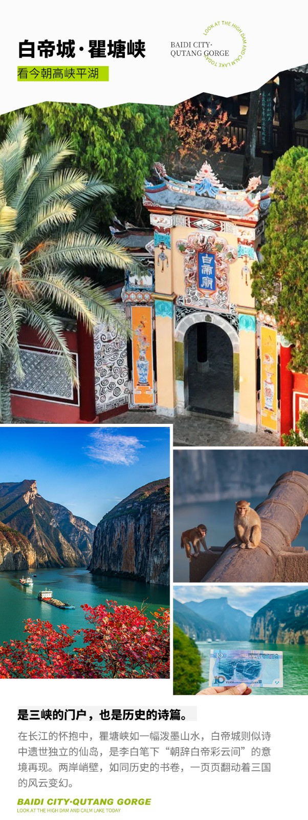 我们将深入山间小路,拍摄瞿塘峡风光,如果你还能找到一张第五版10元人民币,别忘记带上,看看【夔门】过去