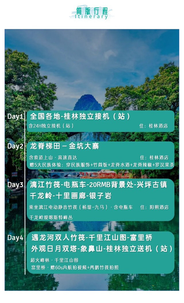 1、升级竹筏:漓江升级电动竹筏,更静音,无异味!