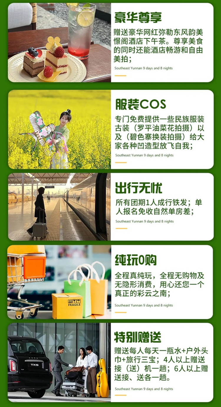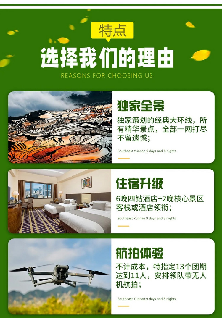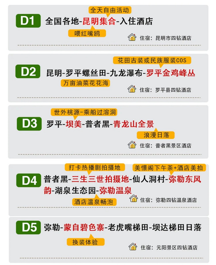 温馨提示:云南早晚有温差,早晚适当添加衣物,中午需做好防晒。