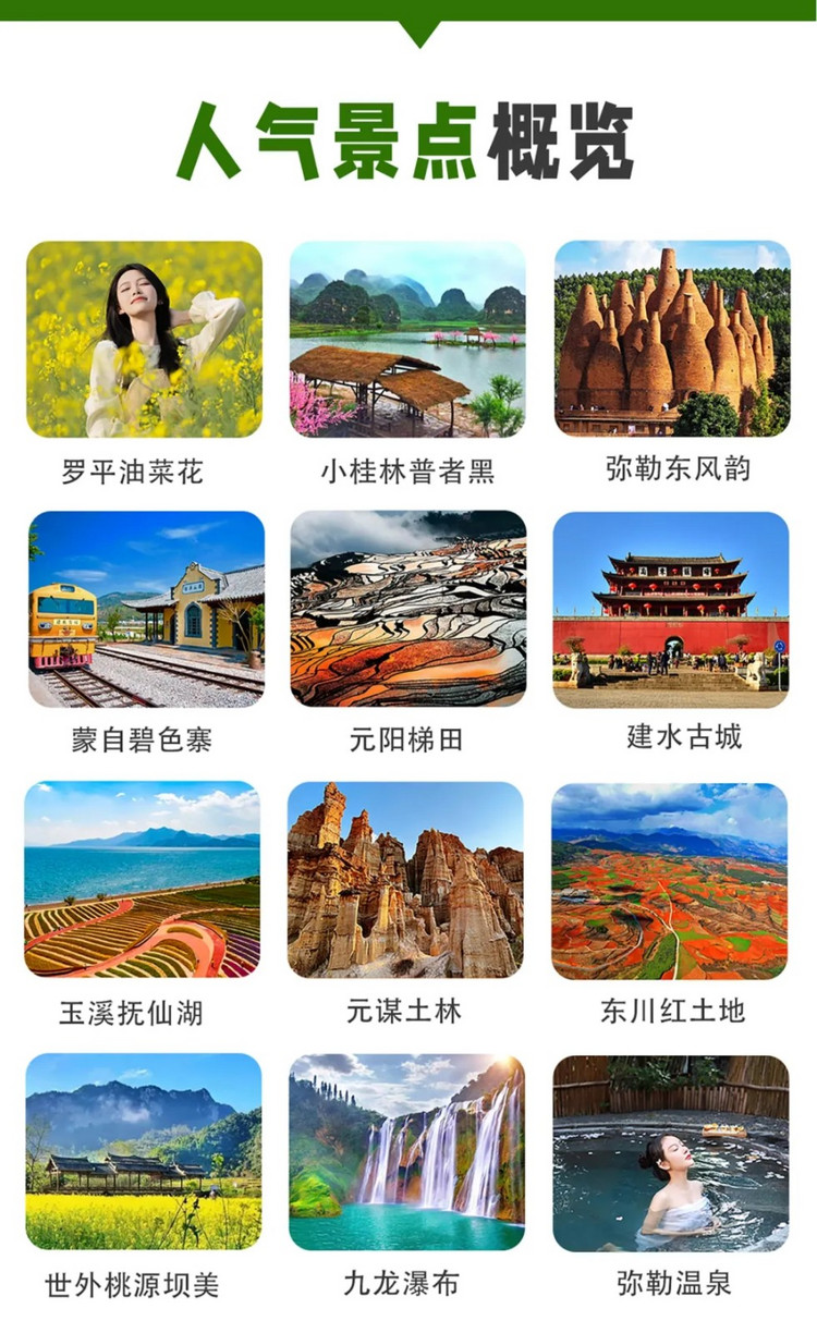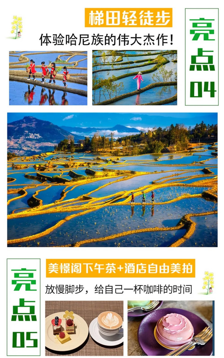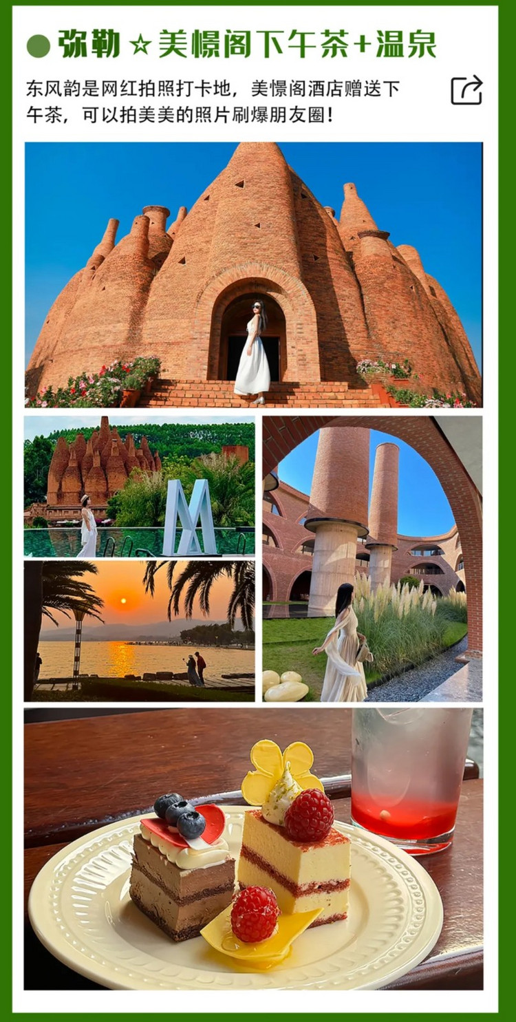 亮点:探访彝族仙人洞村+漫步欣赏《三生三世》取景地晨景+弥勒东风韵+网红美憬阁下午茶(酒店自由美拍)+湖泉生态园