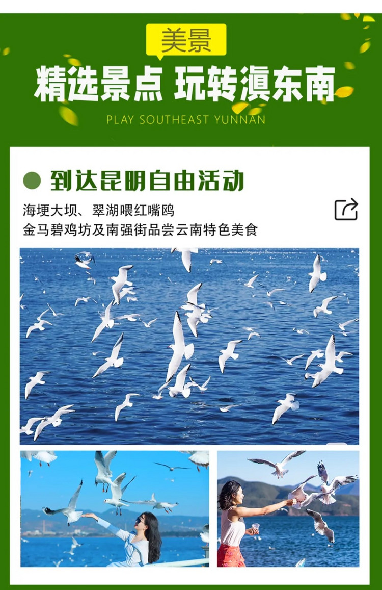 亮点:自由活动期间可去翠湖公园或海埂大坝喂食海鸥
