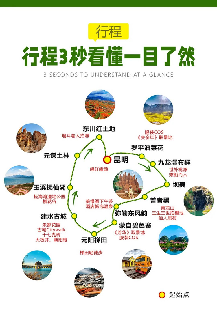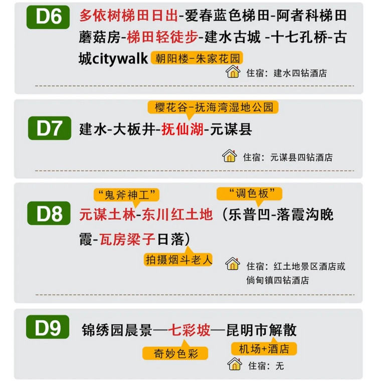 2)有时间不够想提前离开的朋友,也可以选择在抚仙湖前往元谋,经停昆明时候,下车离团,提前结束行程。