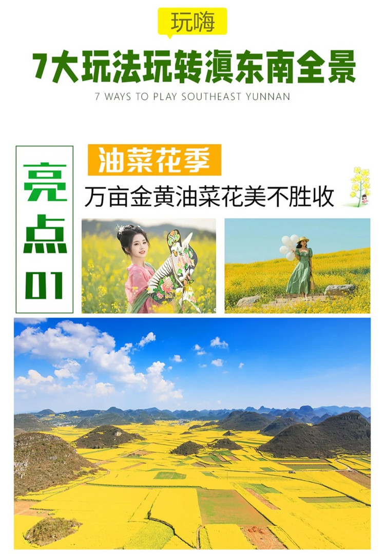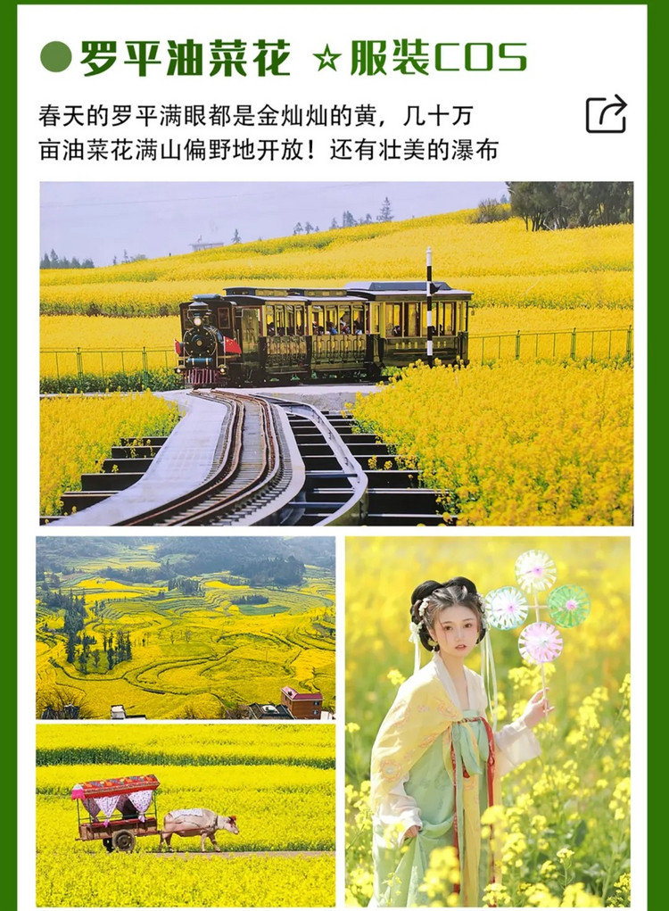 亮点:螺丝田油菜花+壮美九龙瀑布+金鸡峰万亩油菜花海 (花田服装COS)