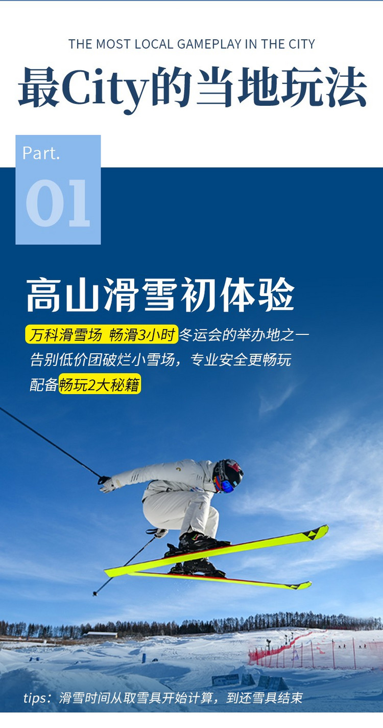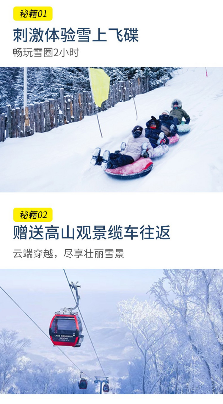 09:00 抵达【万科滑雪场】,这里也是万科投资的5A级滑雪场,也是冬运会的举办地之一。 我们更换好雪具以后,大家就可以自由施展啦,还有刺激的雪上飞碟体验,赠送高山缆车体验1次。