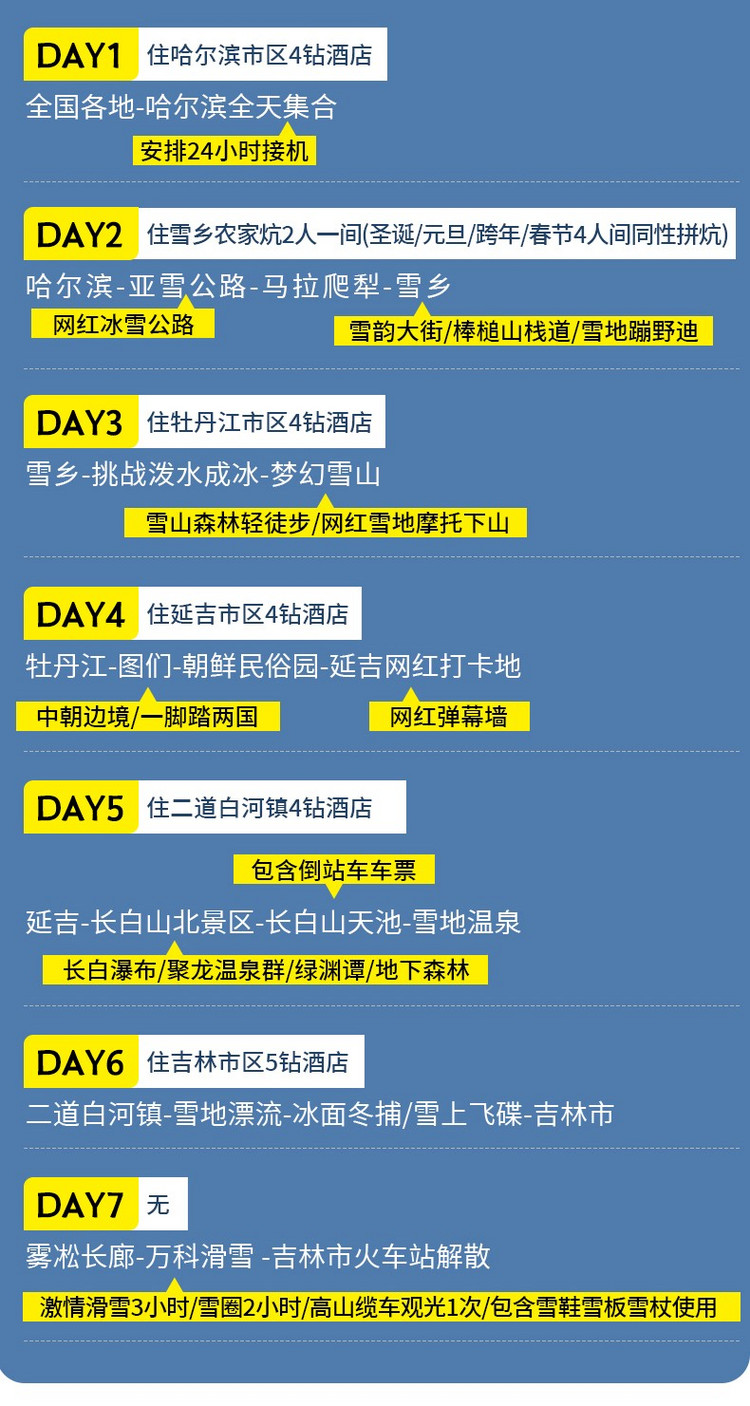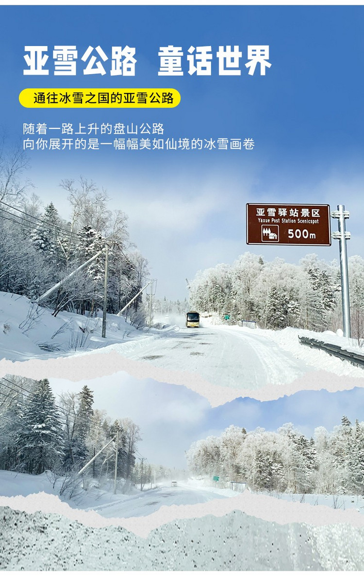 2、哈尔滨-亚雪公路高速路段如遇天气或政府原因封路改走五常或乘坐高铁抵达亚布力,高铁票费用自理。