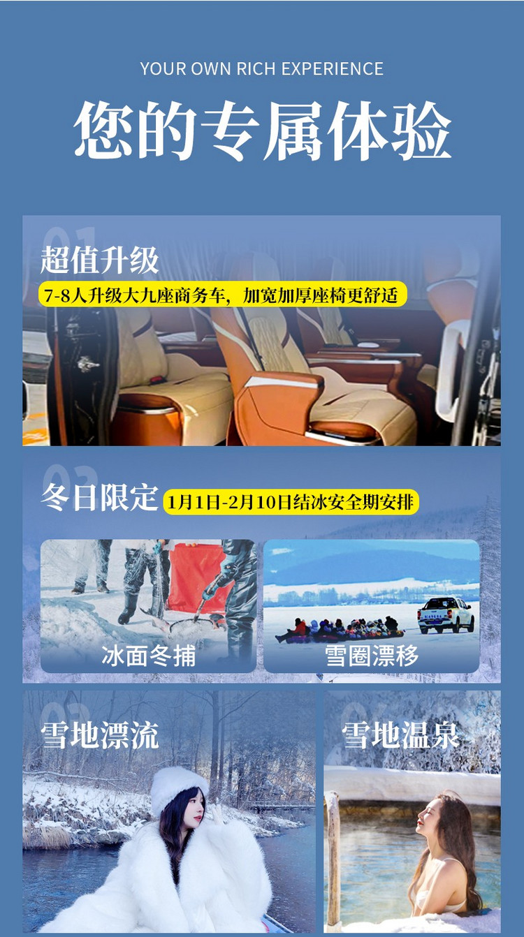 11:00观看【冰面冬捕】项目、乘坐东北特有的交通工具【网红雪圈漂移】(1月1日-2月10日结冰安全期期间安排,其余时间不安全无法安排无退费)