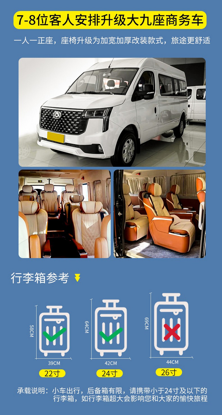 2、如需接机,请提前最少2天告知航班号及时间、人数,未告知者视为自动放弃。