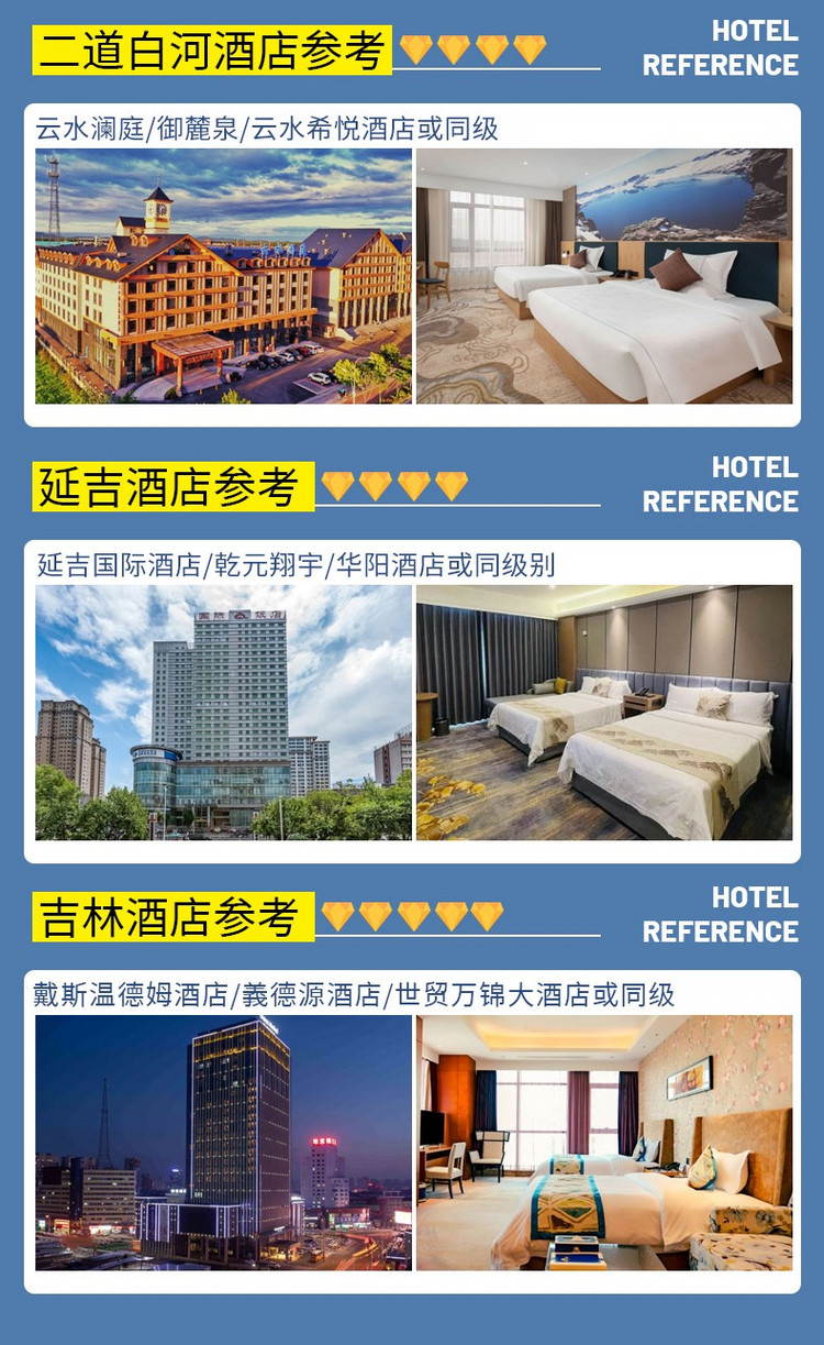 6、长白山景区由于最新政策需要预约,每天限流参观,团队参观时间严格按照预约场次进行;因此,景点参观顺序会按照预约时间进行调整或同团客人安排不同时间游览,敬请配合。如未能预约成功,无法安排游览,我们将调整行程前往游览“长白山雪岭”(车程及门票相抵扣无差价退还),望您谅解。