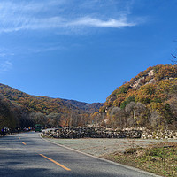 不乘坐摆渡车的伙伴可徒步登山,不用急,山不是很高,也不陡,秋天的风景确实极美,先走一般公路,然后台阶上山!