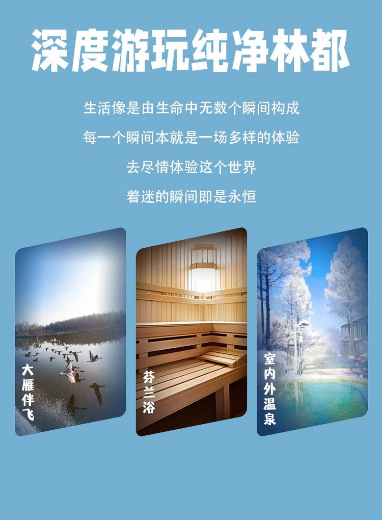 19:00体验【冬日温泉】,桃山玉温泉属于含偏硼酸、医疗氟水矿泉,为苏打水水质。可起到调节人体酸碱度、提高免疫力、抗病驱寒排毒等保健养生作用!