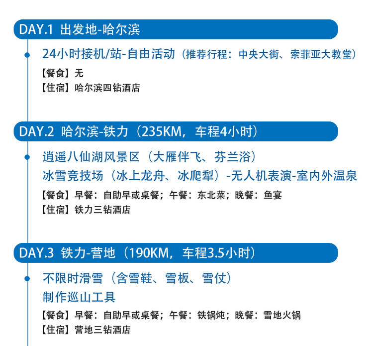 今天是集合日,国内各地的小伙伴来到美丽的冰城哈尔滨,到活动指定酒店汇合,大家可以提前准备我们行程中的路餐,推荐购买巧克力、能量棒等便于携带的食品。