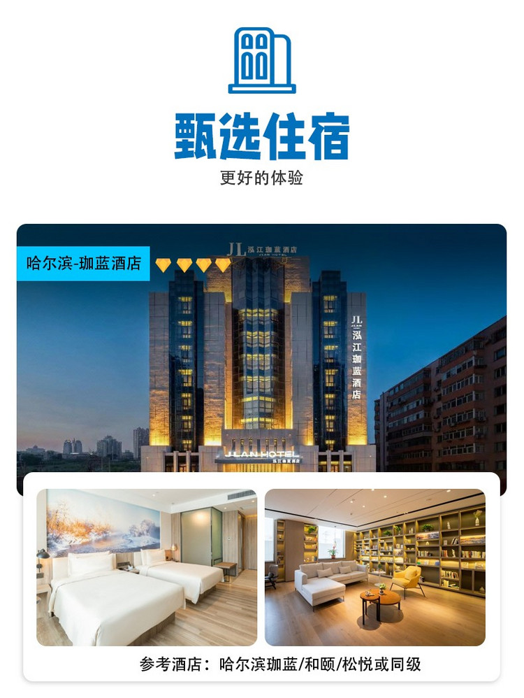 如果有到的早的朋友,可以自行在附近逛逛,哈尔滨比较有名的景点:冰雪大世界、太阳岛、虎林园、龙塔,果戈里大街,中央大街、极地馆等等,我们可以自行畅游哈尔滨冰雪之都。