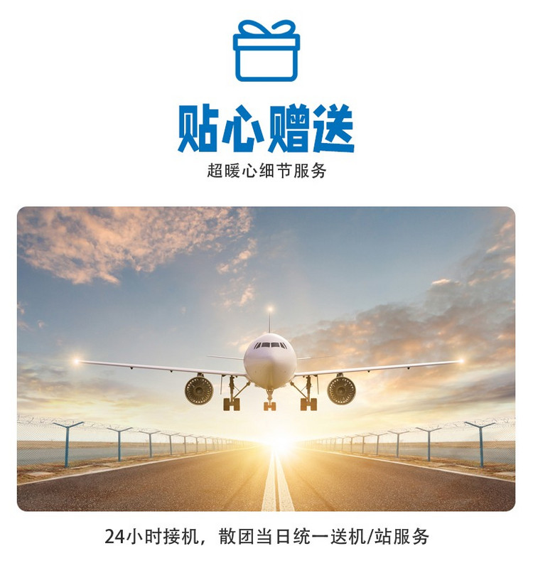 2、如需接机,请提前最少2天告知航班号及时间、人数,未告知者视为自动放弃。