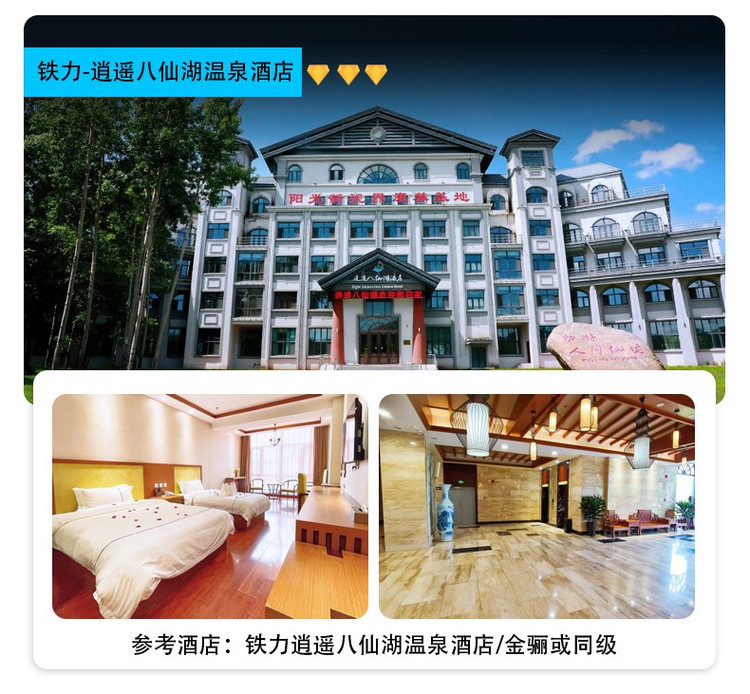 12: 00抵达【逍遥八仙湖风景区】,是为数不多同时集湿地河流、山川湖泊、玉石温泉、冰雪栈道等旅游资源为一体的生态级基地。
