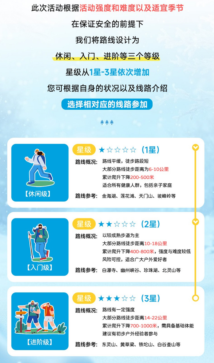 注:以上时间为正常安排时间,参与者体力不同,耗时可能会有差距。如遇天气、道路堵车、景区管控等外在因素影响,以领队安排为准。