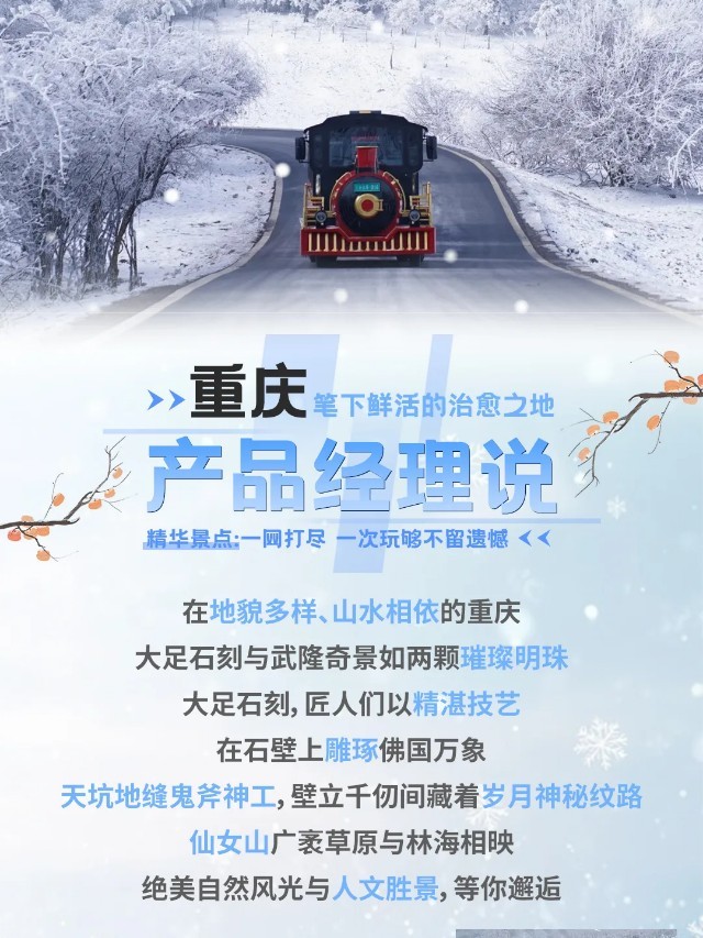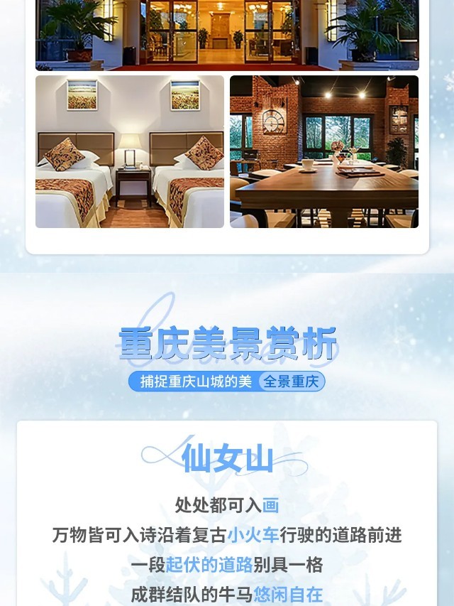 下午到达【仙女山】,游览被誉为“南国第一牧原”和“东方瑞士”的仙女山大草原,此时仙女山银装素裹,雾凇奇观与冰雪娱乐项目交织,宛如童话世界。