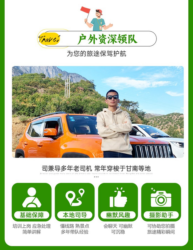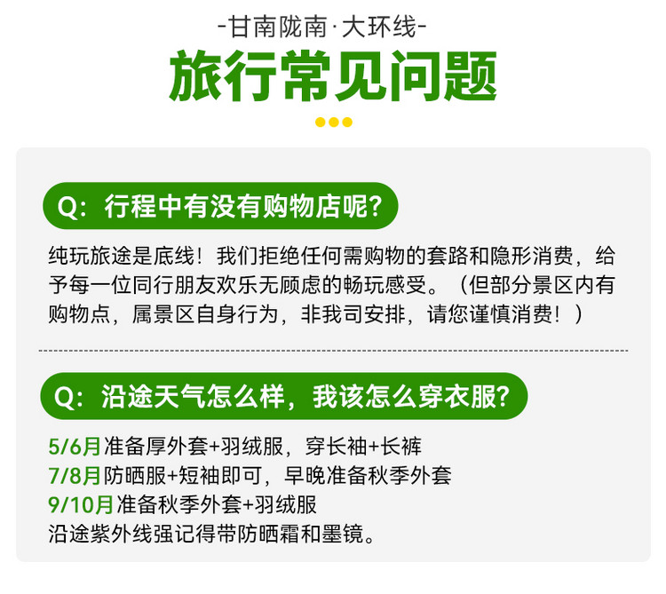 2、行程结束当天18:00左右抵达兰州西,大家可以依据自己的时间,自行选择继续游玩或是启程回家。乘坐火车和高铁建议购买19:00以后的车次,飞机建议购买20:00以后的航班。