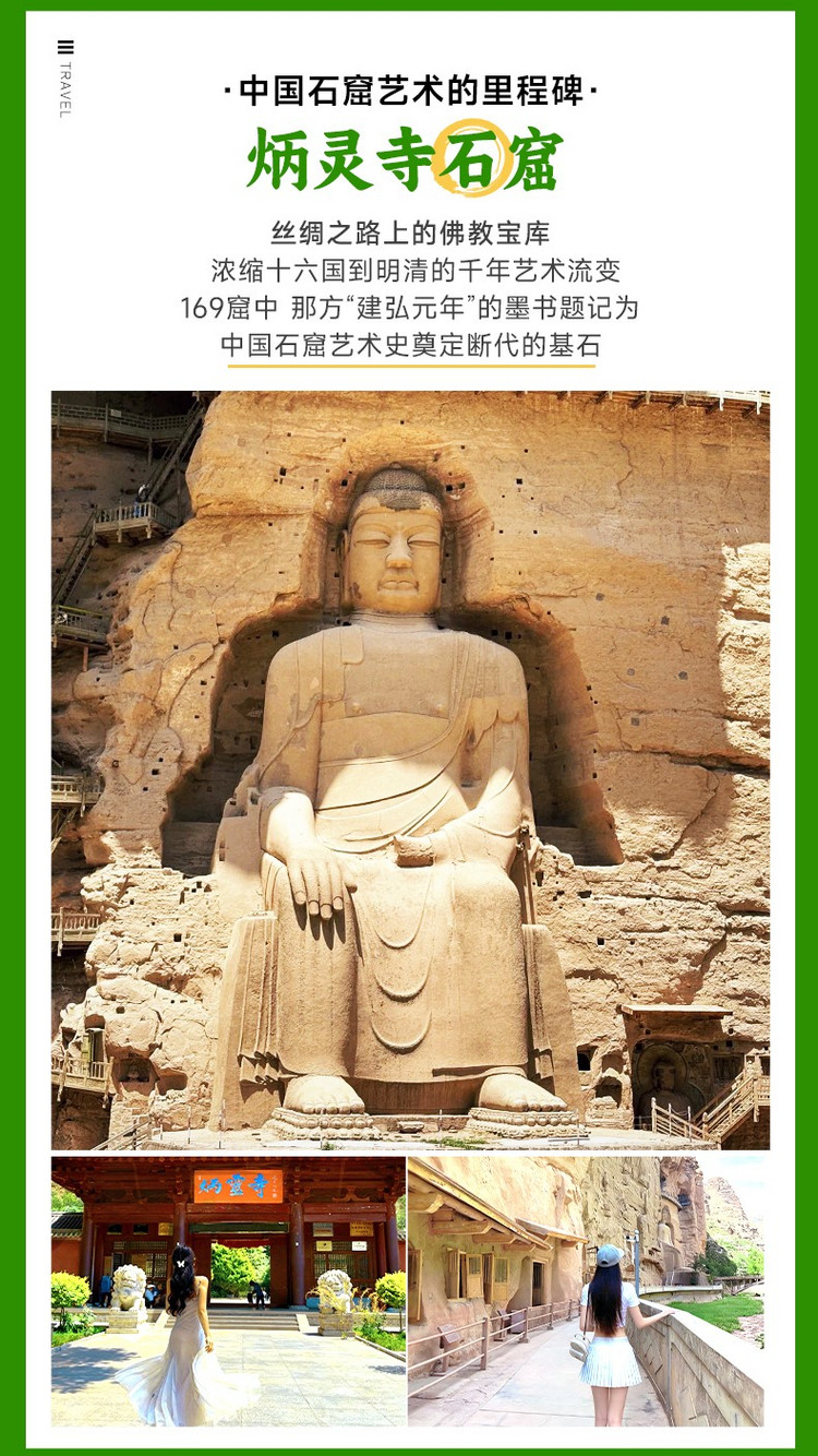 清晨从“中国小麦加”【临夏】出发,回味着八坊十三街浓郁的回族风情,开启今日黄河文化与丹霞奇观的探索之旅。先前往被誉为“中国石窟的百科全书”的【炳灵寺石窟】(100km,车程约2小时,游玩2-3小时)。它伫立于黄河岸边的炳灵石林之中,需换乘快艇方能抵达。作为丝绸之路上的艺术宝库,这里保存着从西秦到明清跨越千年的佛国印记。特窟169窟的西秦壁画与雕塑非常罕见,姿态飘逸的“微笑飞天”令人叹为观止。穿行于栈道,仰望崖壁上层层叠叠的佛龛,会深切感受到时光在岩石上凝固的厚重与庄严。