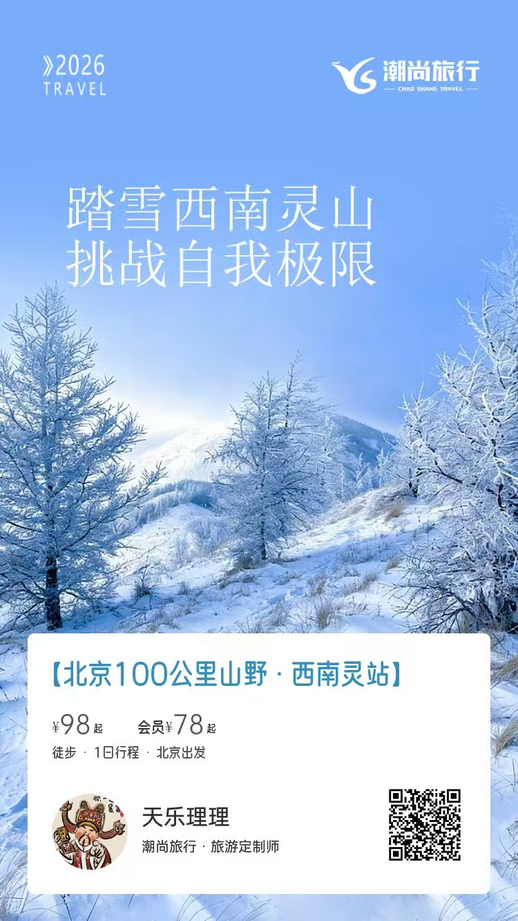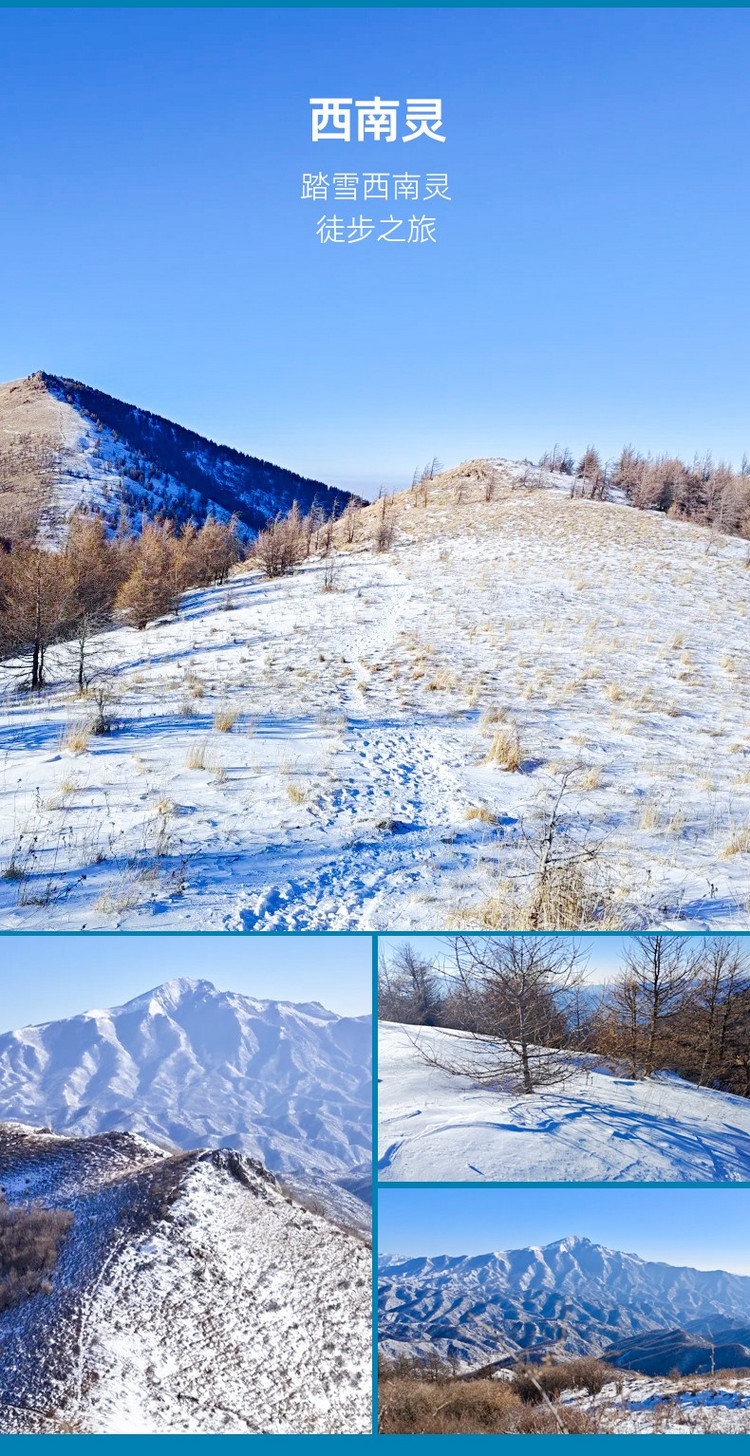 西南灵,位于河北涿鹿,以其2420米的海拔高度,成为离北京最近的“雪山”之一。在冬季,这里白雪皑皑,尤其在海拔1900米以上的区域,积雪深厚,仿佛一座真正的雪山。冬季的西南灵景色苍凉壮丽, 雪覆盖山峦,松林和草甸银装素裹,但积雪使路面难以辨识,行走需谨慎;风雪中常出现云海,与白雪山峦融合,形成厚重开阔的视觉效果,增添神秘感。