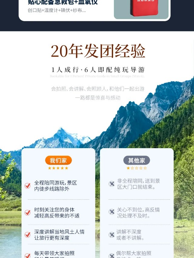 (1)经过前几天的海拔适应,今天的行程将向高海拔地区前行,当天翻越4座海拔4000米以上的高山,为避免高原反应,我社随车备有便携式氧气以备急用;