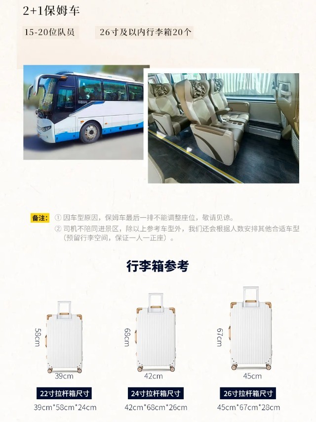 (4)驾驶员会在集合日21:00之前,通知队员次日的出发时间,如果21:00尚未接到驾驶员的通知,请联系客服确认;