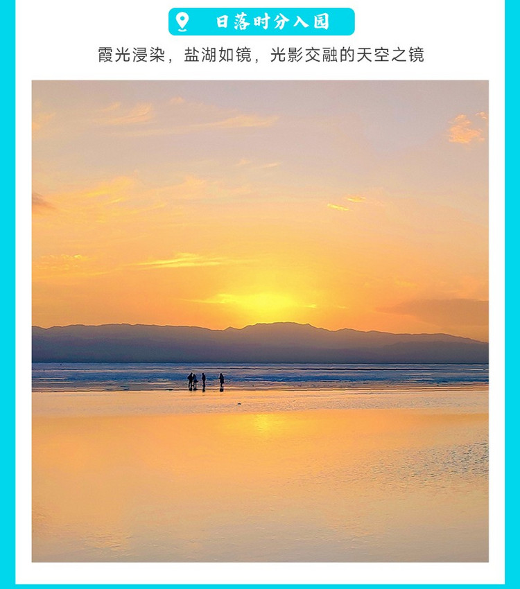 1、茶卡盐湖分为老景区【天空之境】和新景区【天空壹号】两大景区,天空之境以自然景观和盐雕为主,游客较多;天空壹号新增了游乐项目和表演,打卡拍照点更多,行程默认前往【天空壹号】景区(互动体验丰富,游客相对较少);