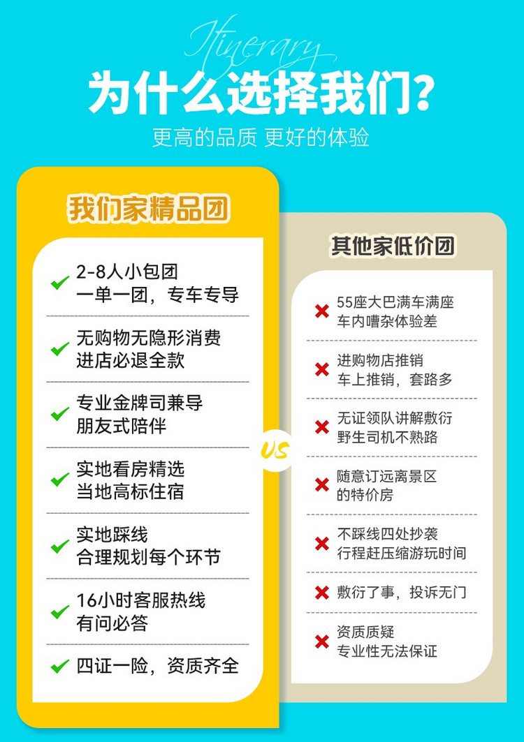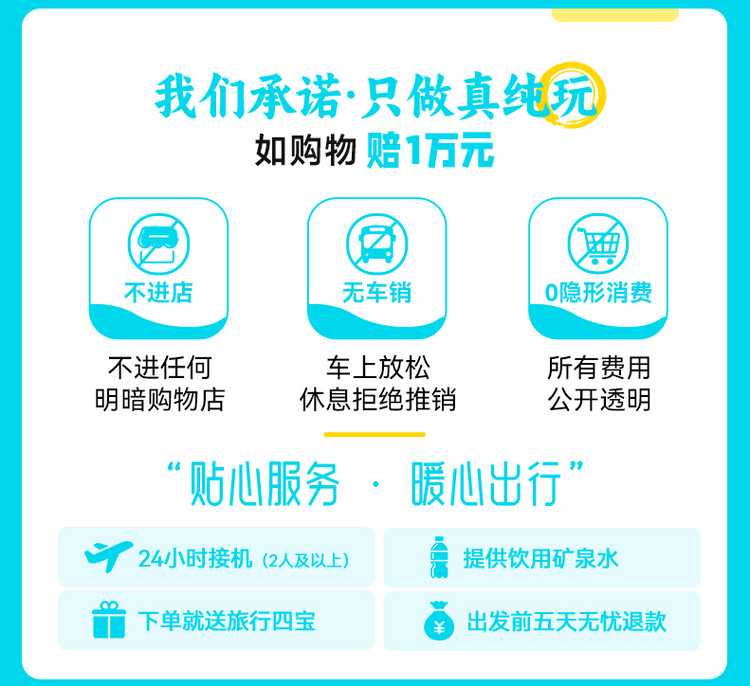 3、行程时间为计划安排,如遇天气、路况等特殊情况,领队将合理调整以确保行程顺利。