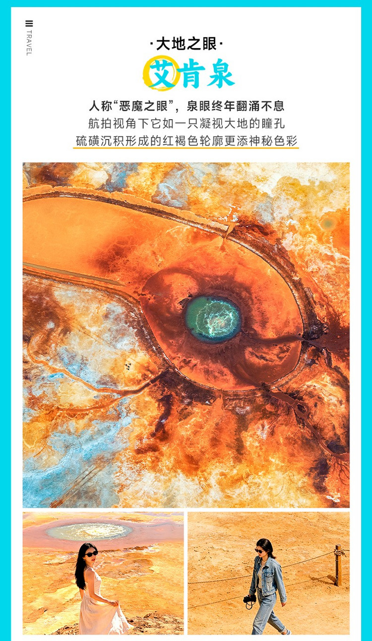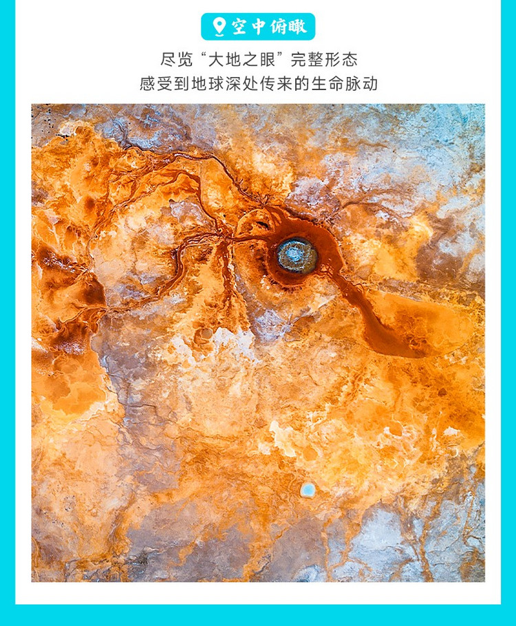 早餐后,前往被誉为“大地之眼”的【艾肯泉】(约35公里,1小时车程,游玩约1.5小时),泉眼终年翻涌不息,周围因硫磺矿物质长期沉淀形成红褐色轮廓,从空中俯瞰宛如一只凝视苍穹的瞳孔,震撼无比。我们特别安排无人机航拍体验,助你捕捉这一地质奇观的全貌,也可以在观景台上用望远镜近距离观察泉眼沸腾的细节,感受地球脉搏的跳动。