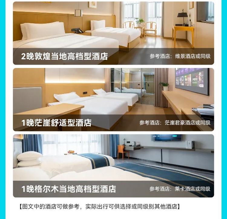 1、早上出发时间以莫高窟预约时间为准,若时间推迟,后续行程时间顺延