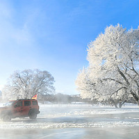 乌兰布统的草原变成了越野爱好者的天堂。越野车在雪地上驰骋,留下一道道曲折的轨迹,那是勇气与自由的象征。