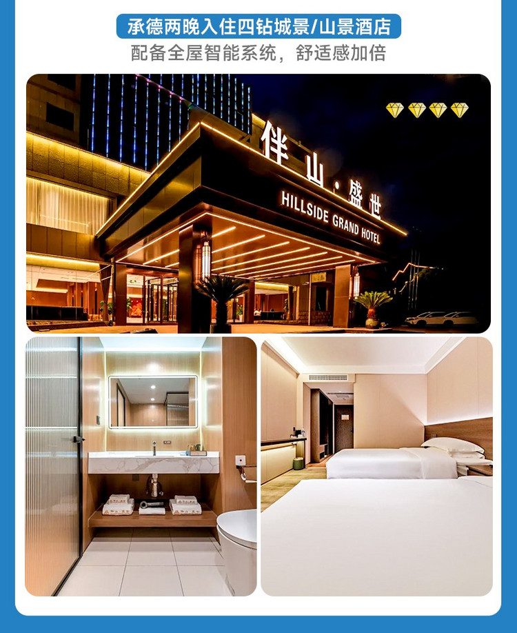 行程中的所列的酒店类型,2星/2钻=经济型;3星/3钻=舒适型;4星/4钻=高档型;5星/5钻=豪华型;意为评定或条件到达相应标准的酒店,少部分地区,由于政策等因素,可能存在酒店条件满足,但未进行星钻评定的情况。