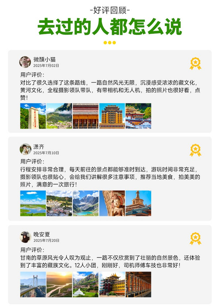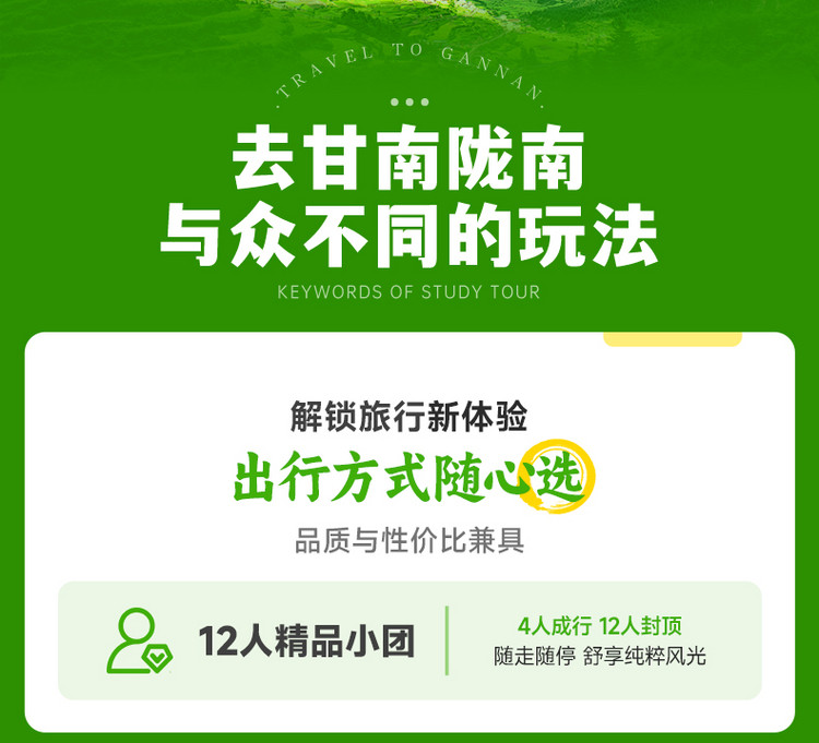 2、行程结束当天18:00左右抵达兰州西,大家可以依据自己的时间,自行选择继续游玩或是启程回家。乘坐火车和高铁建议购买19:00以后的车次,飞机建议购买20:00以后的航班。